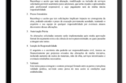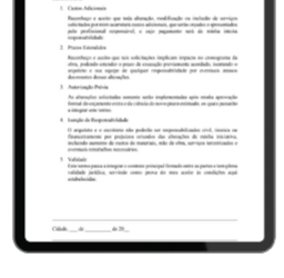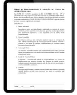 Registro formal de mudanças solicitadas durante a obra. Proteção extra contra ruídos e prejuízos.